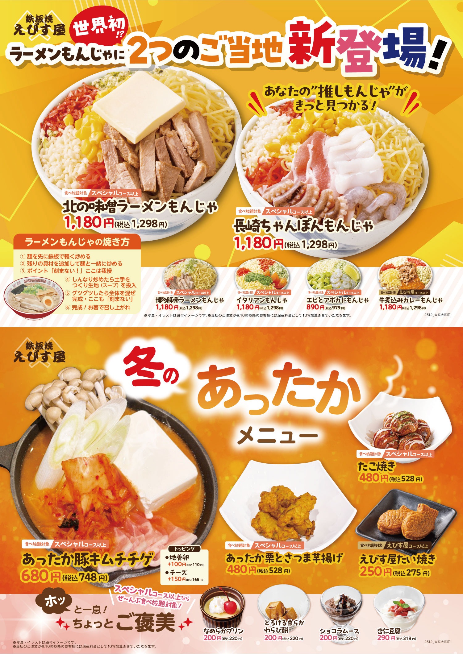 名物えびす屋プレミアムもんじゃに2つのご当地新登場!冬の新作あったかメニューでほっこり!